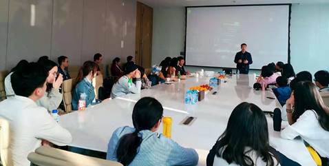 同学们首先参观了金龙鱼大厦的办公区域,舒适的办公环境、和谐的工作氛围、亲密的同事关系给学生留下了深刻的印象。随后,集团安排四位专家为同学们作职业生源规划指导。首先集团人力资源部沈婷以益海嘉里投资有限公司为例讲述了国内粮油企业的现状、发展历史、业务范围等内容。随后,餐饮事业部龙琨经理就餐饮行业的历史性的变化和现状,从人才和机遇两个方面讲述了餐饮行业的巨大发展潜力。消费品事业部左晓鹏经理从自身销售的角度,讲述目前销售额度的占比、多元化的消费层次以及市场容量的变化等营销相关内容。招聘组丁鹏经理介绍了公司除餐饮行业的其他领域和目前大学生就业的现状,也为目前的在校大学生提供了实习渠道。